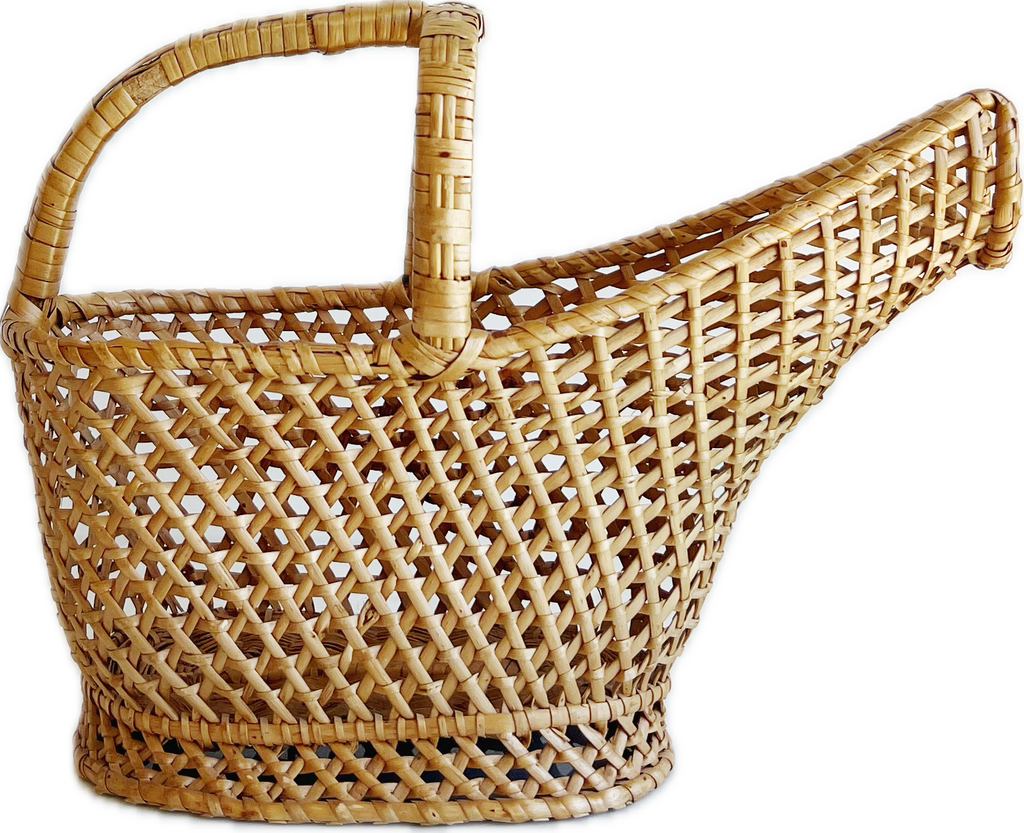 Unique piece full of rustic charm. This home decor item was designed to hold a wine bottle in the French, European culture; but is now referred to as a watering can cover, basket caddy, small plant holder or gravy boat basket.