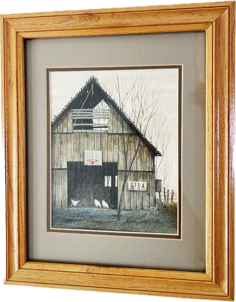 • This framed vintage print depicts a rustic, weathered barn or farmhouse in a rural setting with elements suggesting a sense of abandonment and nature reclaiming the space. It can be considered a collectible piece of art, particularly for those interested in vintage art and prints with a nostalgic or rural theme.