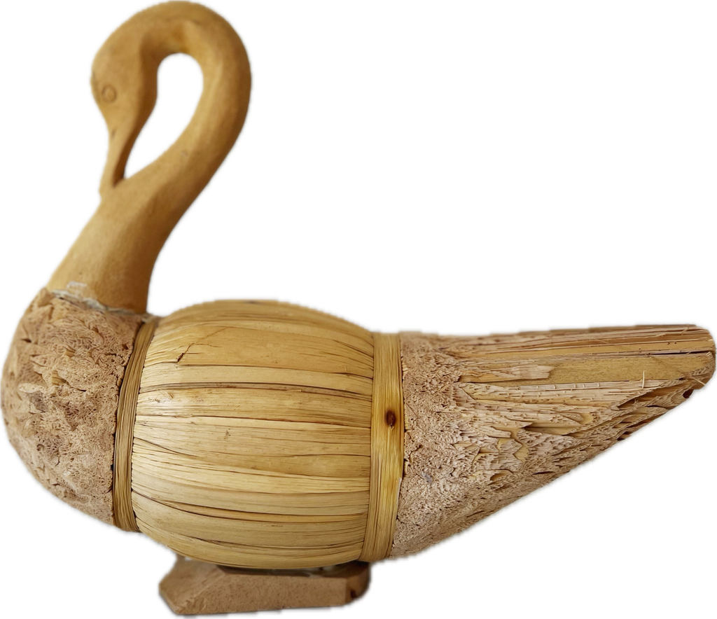 Vintage handmade carved swan figure is made of wood & reed and gives off a primitive folk art vibe.
