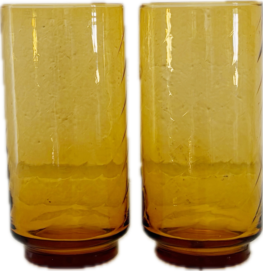 Honey gold amber vintage Libbey glasses are a flat diamond optic swirl design manufactured in the 1970s to 1980s. These sturdy 22oz tumblers are in good condition and are also known as Libbey Bolero Gold or Tawny Brown vintage glassware. Listing is for the pair.