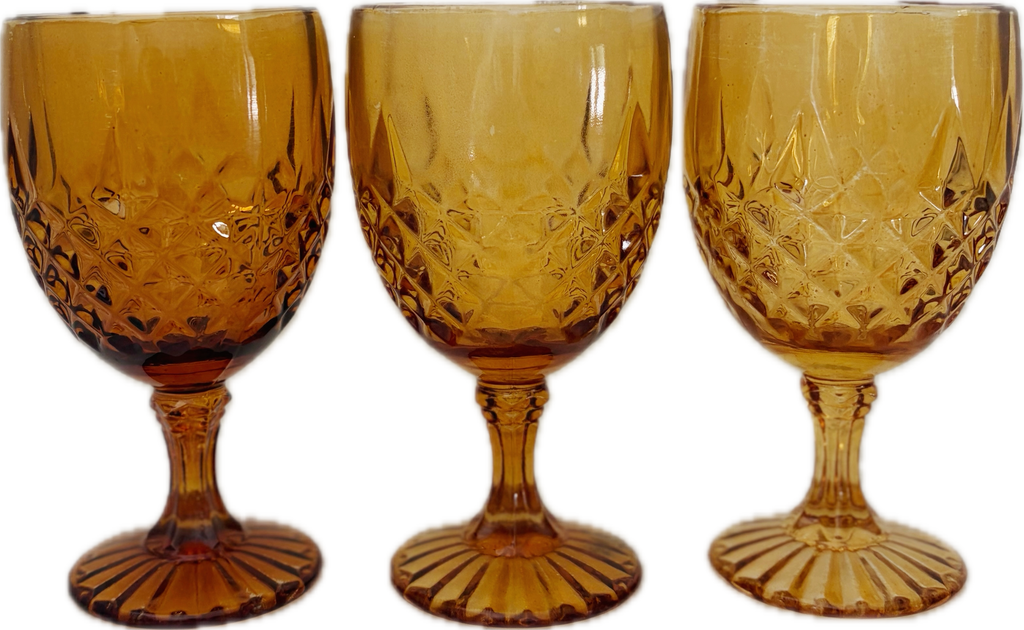 Vintage Diamond Point Goblet Glassware Set Amber – Home and Such